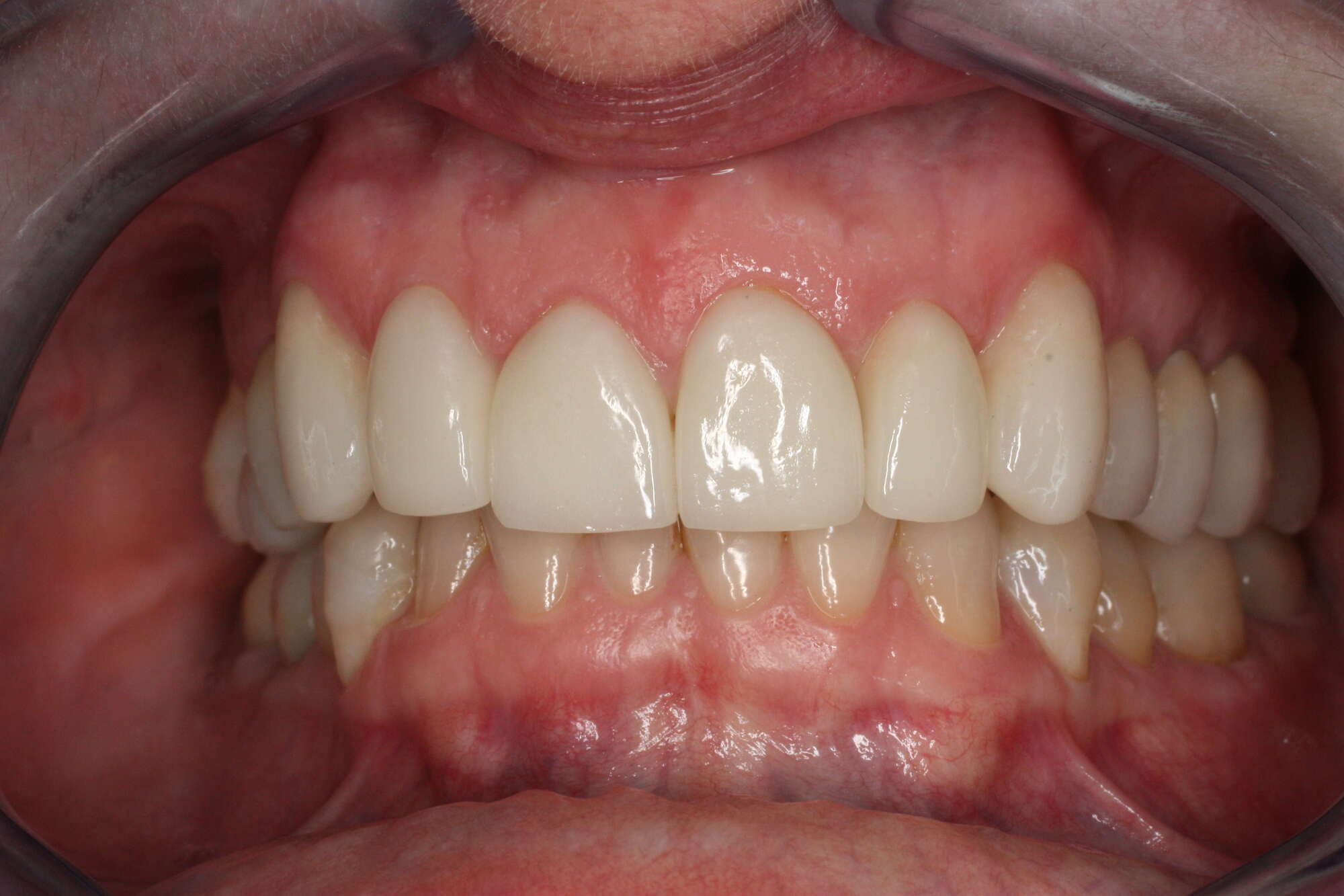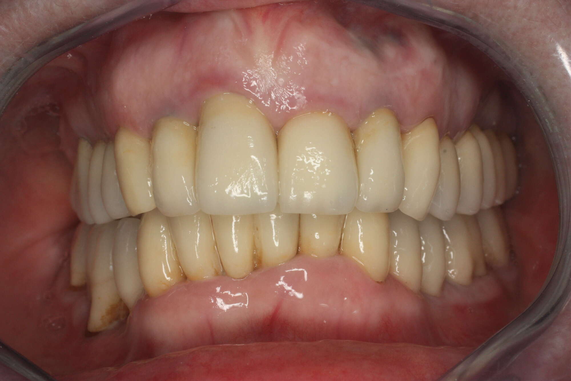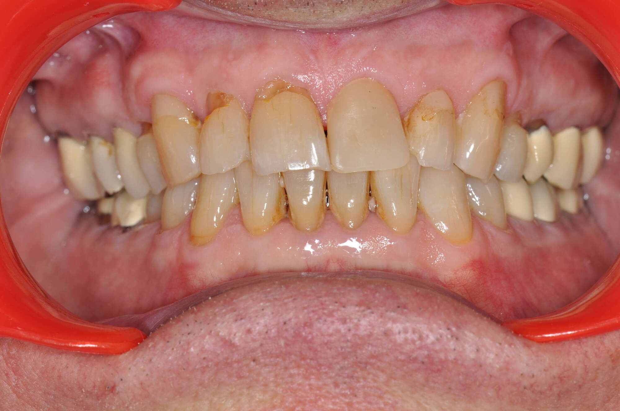 Ce patient avait une usure sévère multifactorielle : combinaison de bruxisme, d'usure acide et d'usure liée au brossage.