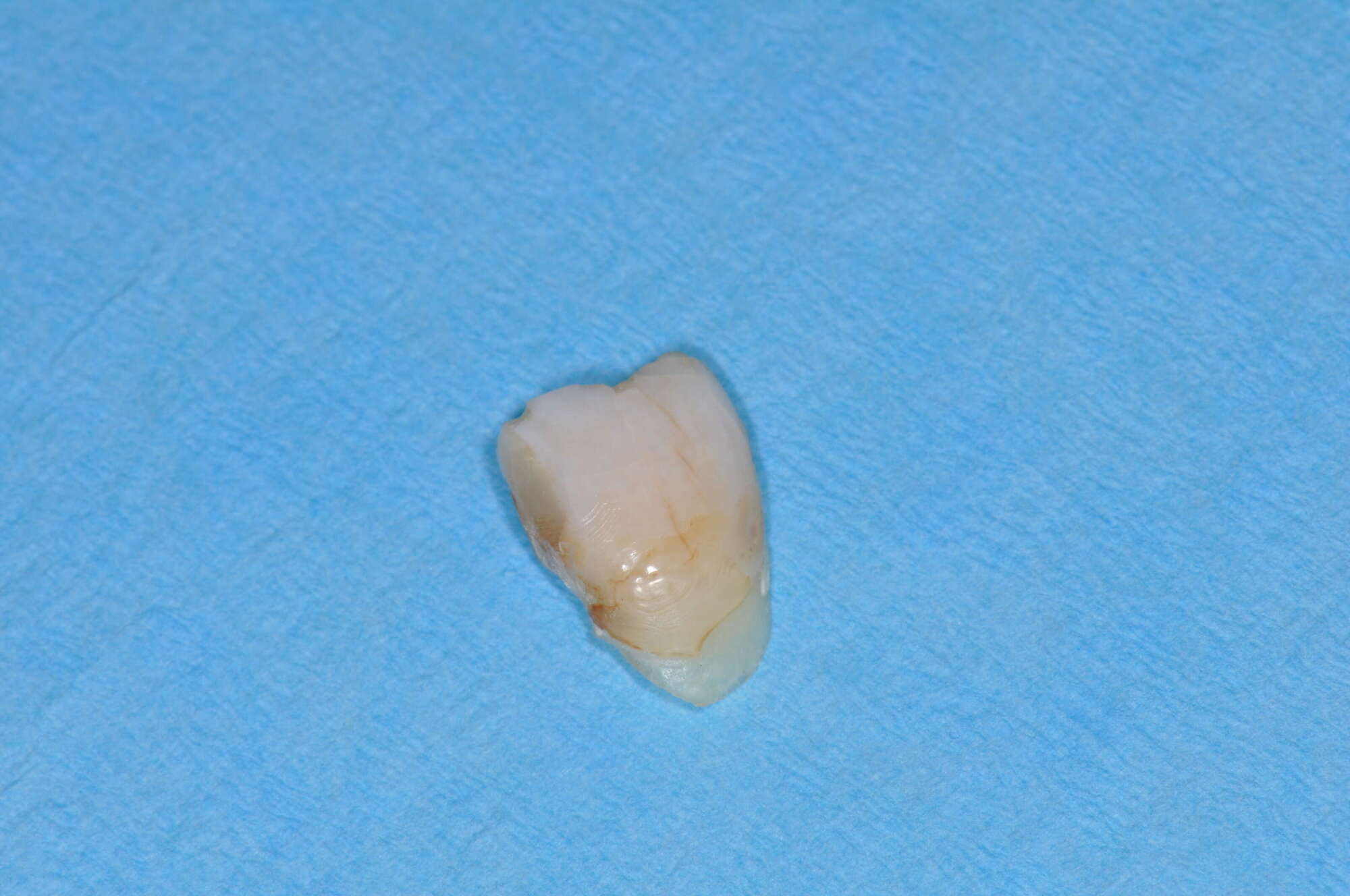 Le traitement d'urgence a consisté en une simple réparation au composite. Deux mois plus tard, la dent était à nouveau cassée. Le patient a donc accepté une consolidation de ses dents usées par des reconstructions en céramique pressée sur toute la mâchoire supérieure.