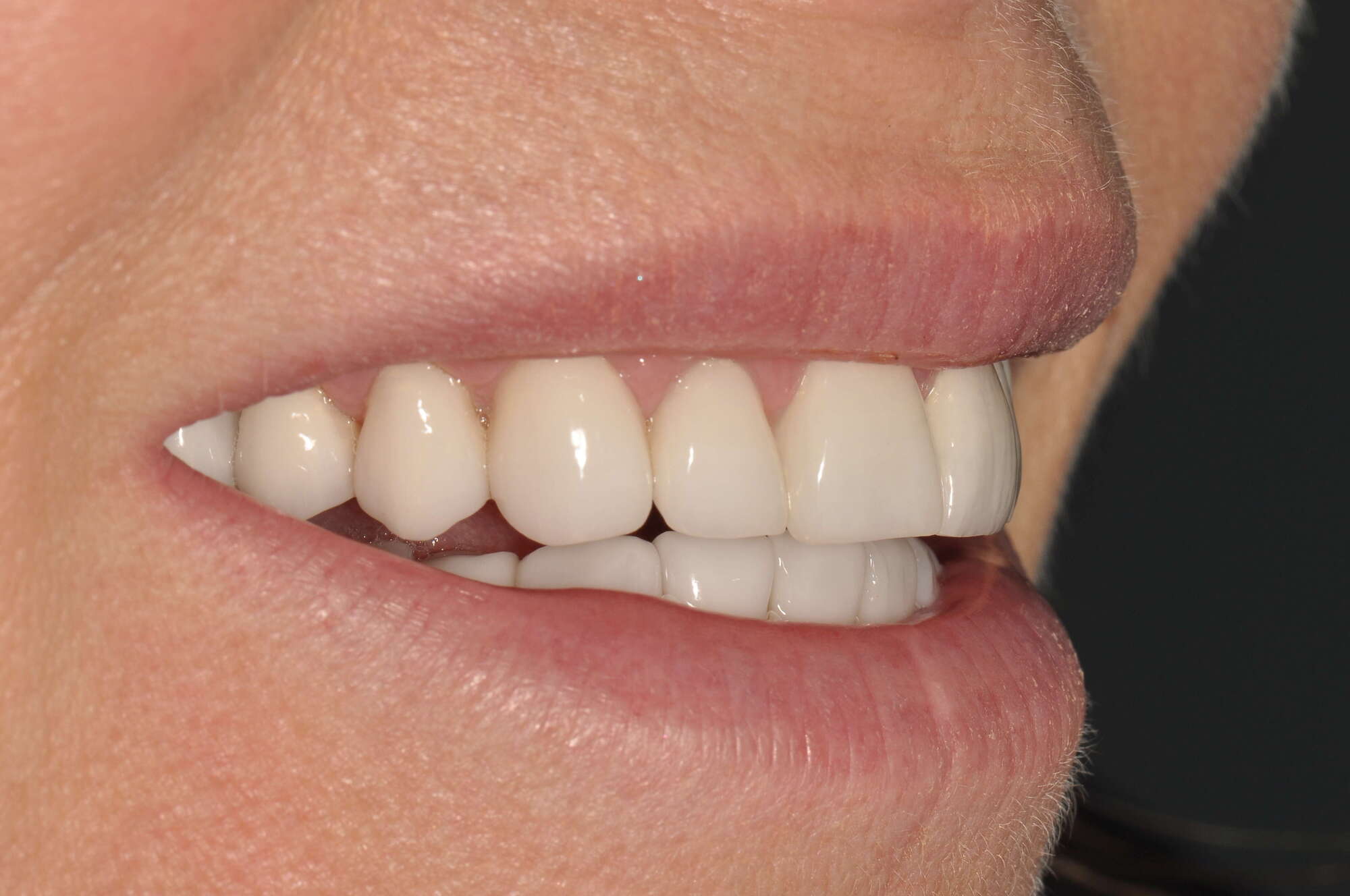 La substance dentaire a été remplacée par de l'émail artificiel ( céramique ), ce qui a permis de protéger les dents, leur redonner une bonne efficacité masticatoire, et supprimer les douleurs déclenchées par le chaud et le froid. Tout cela sans à avoir à dévitaliser une seule dent, et en économisant le plus d'émail restant possible.