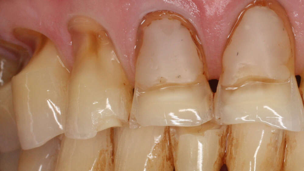 Pour l’éviter, il est essentiel d’adopter une technique de brossage plus douce, d’utiliser une brosse à dents souple et un dentifrice non abrasif, tout en supprimant les habitudes délétères. Si l’abrasion a provoqué une perte de substance ou une hypersensibilité, il est possible de restituer la forme d’origine des dents grâce à des composites esthétiques appliqués directement au fauteuil, ou, dans certains cas, grâce à des restaurations prothétiques plus élaborées.